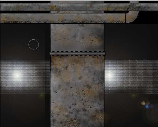 En la segunda foto que los carriles del protector fueron hechos de manera similar a los tubos, las chispas y la forma de spray líquido vertido se hacen del mismo modo que las manchas moho y oscuros moteados, con el pincel en modo de pantalla y de las chispas en total menos de opacidad. La pared sobre el río fluir, brillante líquido se hace igual que en la primera imagen. el líquido que fluye se hace uso de los modos de pantalla y muliply blendind de cepillos y tampoco utilizo el filtro de viento o un gran conjunto de manchas para hacerlo direccional. Creo que la puerta hasta la parte superior es bastante auto explicativa...