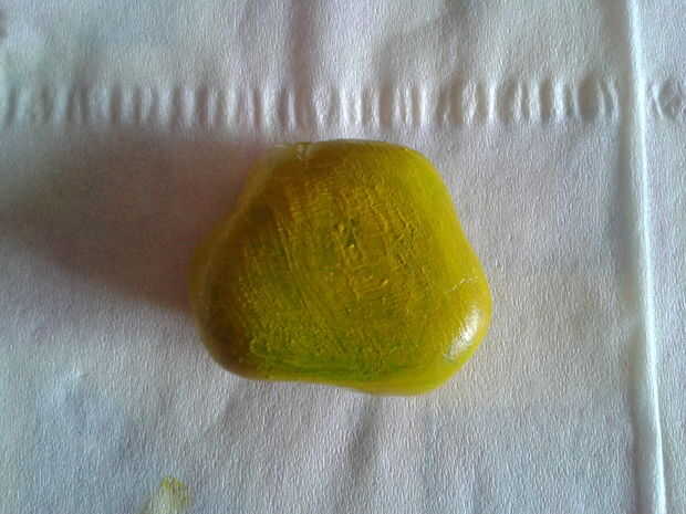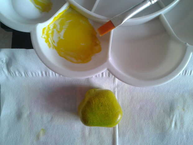 Debe underpaint la piedra antes dibujándolo. Bob esponja es amarillo, la piedra entera con el color amarillo de la pintura.