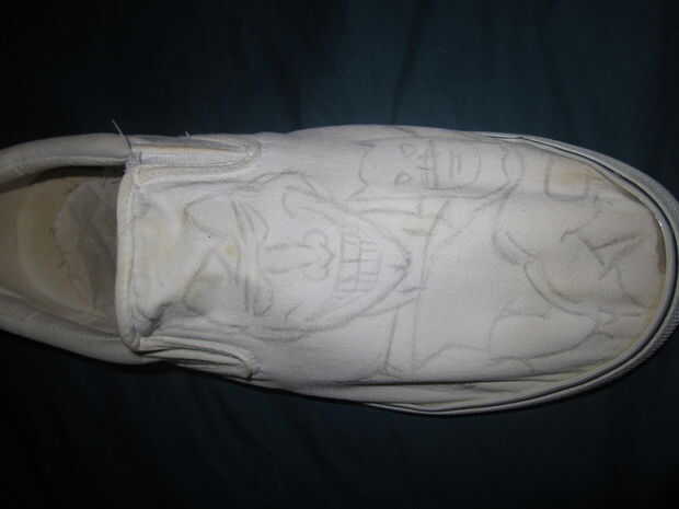 * Aquí es uno de los zapatos como había esbozado con lápiz. Batman y el Joker!!! :)
