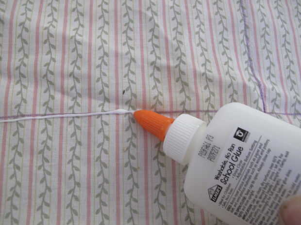 Nota: Si no estás haciendo y edredón y sobre todo si tienes alfombra puede poner algo debajo de la tela. He conseguido pegar mi proyecto para mi piso pero salió de las maderas duras sin ningún problema.