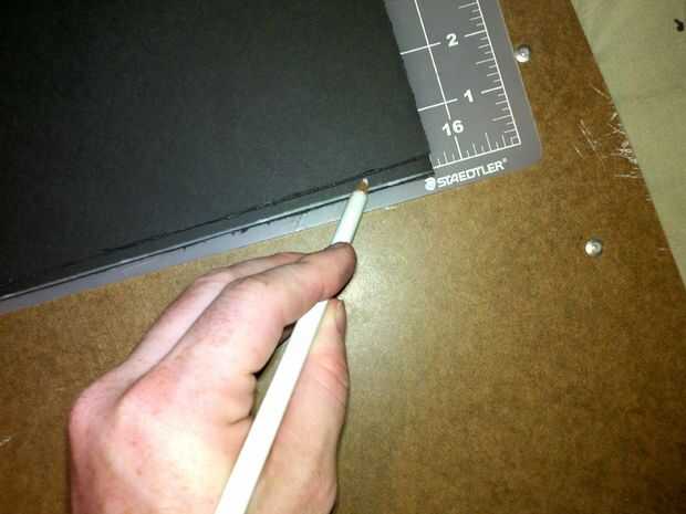 Ahora es donde usted realmente corta las piezas del tablero de la base de espuma. Mi recomendación es cortar las piezas hacia fuera pero no cortar los puntos donde la tableta y el lápiz van a ir todavía... Dependiendo de la calidad de su afeitadora que tenga que cortar el papel en la parte posterior.