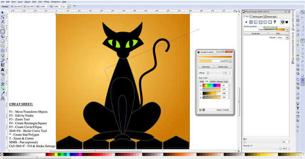 Se sentará encima de todo lo que has creado hasta moverlo hacia abajo en la pila. Seleccione el objeto (F1) y mueva hasta el fondo presionando la tecla "Fin". Con este objeto seleccionado pasar a la configuración de relleno y trazo y cambie el tipo de relleno un degradado radial.