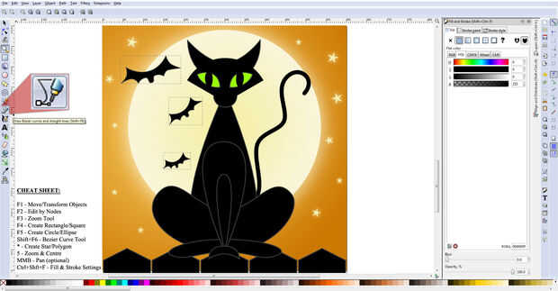quiero imágenes para ser "equilibrado" (también como a la línea de cuchillería, uniformemente espacio mis bolígrafos y lápices y perfectamente pila de revistas...), así que para compensar la cola dibujamos a la derecha, he creado algunos murciélagos para el lado izquierdo de la imagen con la herramienta