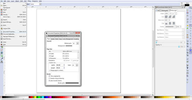 Cuando usted primero abre Inkscape, el tamaño y forma del documento será el tamaño del documento de Inkscape por defecto (creo que es A4?), no una plaza como he usado en este tutorial. Puede cambiar el tamaño del documento va a archivo > Propiedades del documento > ficha de la página.