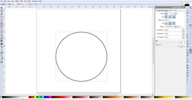 Al que le ha hecho pueden cerrar la ventana de preferencias y Inkscape lo recordará como su estilo de relleno y trazo por defecto. Ahora puede seguir adelante y seleccionar la elipse que hiciste anteriormente (con F1 o la barra espaciadora para que aparezca la herramienta de transformar o mover) y después de que ha seleccionado puede eliminarla (usando la tecla delete - fácil peasy!).