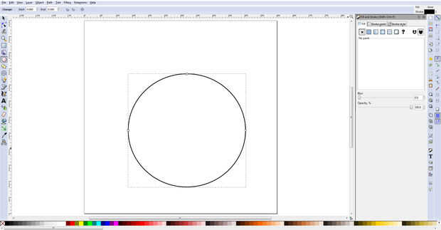 Para el comienzo de este tutorial, como empezamos a exponer las formas básicas, tendrá que establecer la opción de relleno (primera pestaña) sin pintura, el trazo pintar (segunda pestaña) a ser un color plano de negro puro (000000ff) y el estilo de trazo (tercera pestaña) se establece en un ancho de 2,000 píxeles.