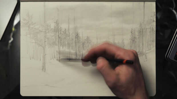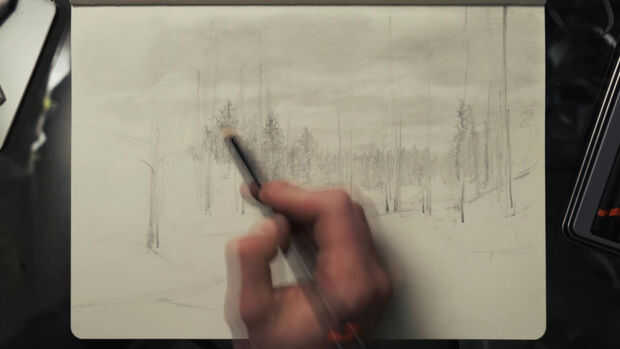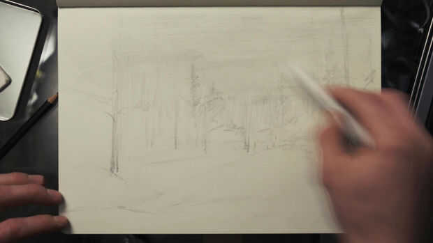 Dibujo ligeramente al principio me permite fácilmente trazar el dibujo entero como para cambiar la colocación de cualquier objeto sin mucho borrar. De hecho, no preocuparse de borrar la mayor parte de las líneas poco trazadas desde el principio del dibujo porque estaría todavía cubiertos por valores más oscuros más tarde.