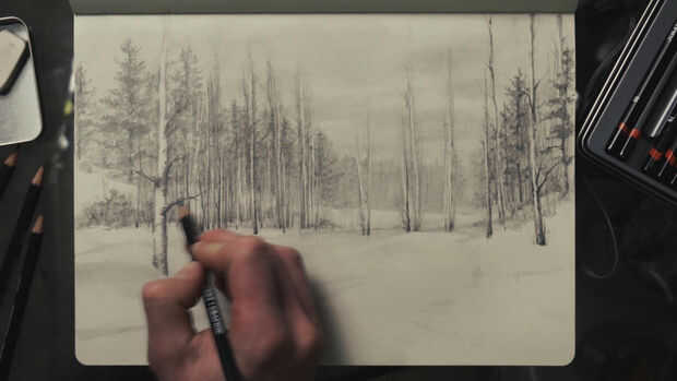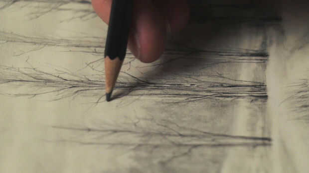 Añadiendo detalles últimos me ayuda a concentrarse en toda la composición desde el principio y no quedar atrapados con pequeños detalles demasiado pronto. Medida que avanza el dibujo, que sigo añadiendo más detalles con líneas más oscuras para dar la sensación de profundidad. Como regla general, dejar objetos en el fondo más claro y menos detallada opone a primer plano donde los objetos son más oscuros y más definida. Usando el borrador para borrar áreas resaltadas ayudó a llevar a cabo las áreas de contraste.
