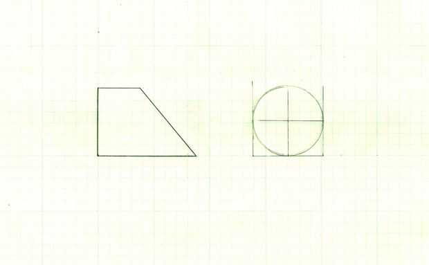 Ahora decidí poner aparte cada vista 1". Pero para éste, el lado derecho es un círculo... ¿de dónde que 1" dejar en? Dibujar un cuadro alrededor del círculo, tocando sus partes. El borde izquierdo es donde quieres el 1" a parar. Luego dibujar líneas a medio camino a través de la caja para encontrar el centro. Configurar la brújula para el radio del círculo y dibujar hacia fuera.