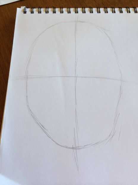 Necesita dibujar dos líneas. Uno por la mitad un uno en el centro de la cabeza.