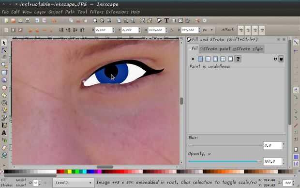 A continuación tenemos que rellenar el ojo con blanco. Usted puede notar que ojos no siempre son blanco perfecto, tan sólo un color en el relleno y el trazo que se asemeja al color del ojo. ¿Quieres las pestañas? Bezier algunas formas de pestañas suave hacia fuera y rellenar con negro. Ahora, no ves un ojo sin iris y sin pupul, ¿te? Así que vamos a utilizar nuestra herramienta de círculo/elipse en la barra de herramientas izquierda. Es fácil de encontrar, muestra una imagen de un círculo. Asegurarse de que están en la capa de características faciales, luego haga clic y arrastre el mouse sobre donde desea dibujar el círculo. Puede editar el círculo ir al icono de puntero en la barra de herramientas izquierda, haga clic en el círculo y arrastrar las flechas. Usted puede jugar con el tamaño un poco, cualquier cosa puede ser deshecha. Una vez que estés feliz, ir en el trazo y el relleno. Mientras que en el relleno, se verá un pequeño icono en la parte superior de la caja de relleno y trazo que muestra un degradado radial. Haga clic en él y luego haga clic en Editar. En la parte superior, haga clic en la casilla que dice parada de ___. Si se arrastra hacia abajo, tiene dos 'paradas'. Uno tiene el patrón de transparencia (damas grises) Haga clic en con la transparencia. Cambiar la opacidad a 100%. Solía estar en 0%. Cambiar una de las paradas para el color de sus ojos y la otra a un color ligeramente más oscuro. Ahora debe tener un iris que tiene un degradado. Si lo desea, usted puede hacer se parecen más a iris añadiendo un poco de detalle. Coge la herramienta de curvas Bézier y dibujar una forma como la de abajo. Entonces, el trazo y el relleno, llevar la carrera, hacer el relleno negro y gire a la derecha de opacidad hacia abajo. Repita el proceso para el otro ojo. Si te gusta dibujar unas pestañas con la herramienta bezier y hacerlos negro. Por ahora, debe estar familiarizado con esa herramienta, y si desea añadir cualquier cosa que usted debe saber cómo.