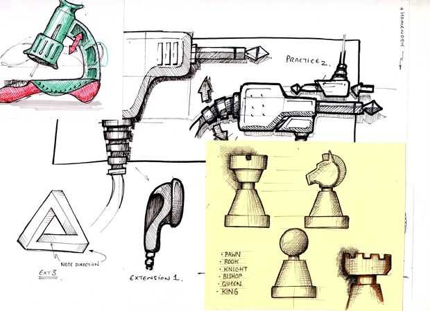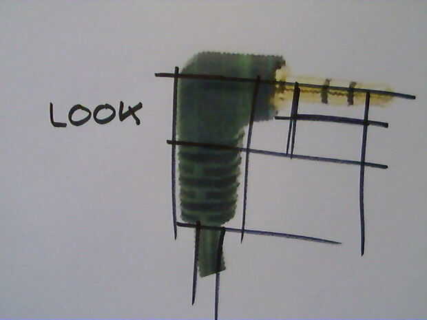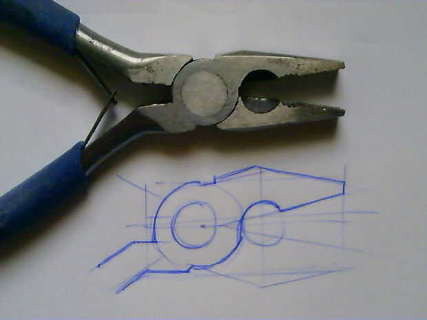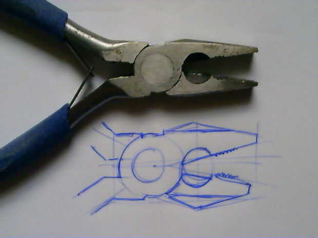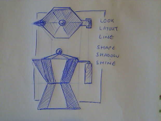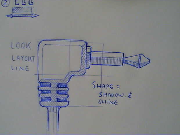Lo primero que debemos hacer es establecer las proporciones generales del objeto en la página que tenemos que mirar con cuidado. Yo generalmente esbozar ideas en la página del tamaño de un puño apretado, lo suficientemente grande para detalles pero dejando suficiente espacio para añadir otras ideas. - Recuerde mantener sus líneas de luz y débiles.