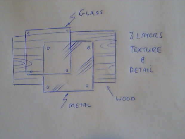 - Mira y copia imagen 15, aquí estamos utilizando unas líneas para crear la ilusión de la textura y los pequeños círculos en las esquinas sugieren tornillos o pernos, este es el detalle. Otra vez esto satisface las expectativas de los espectadores en mente objetos 3D tienen detalles que podemos ver.