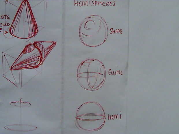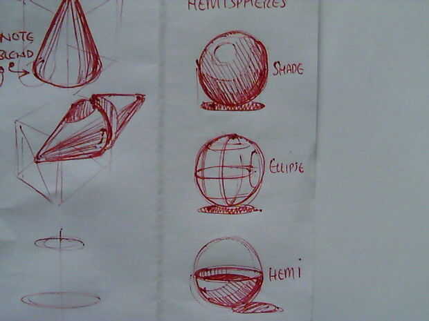 Esferas no te se forma de una construcción básica son inherentemente circulares, reciben allí la forma de su sombra, líneas o detalles. Imagen 34 y 35 muestran los dos enfoques principales diferentes a ilustrar un sombreado de superficie, tonal esférico o el uso de líneas elípticas por toda la superficie. También hay una ilustración de un hemisferio.