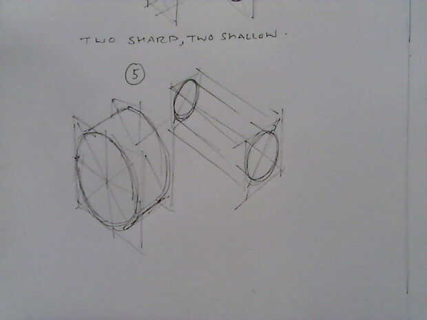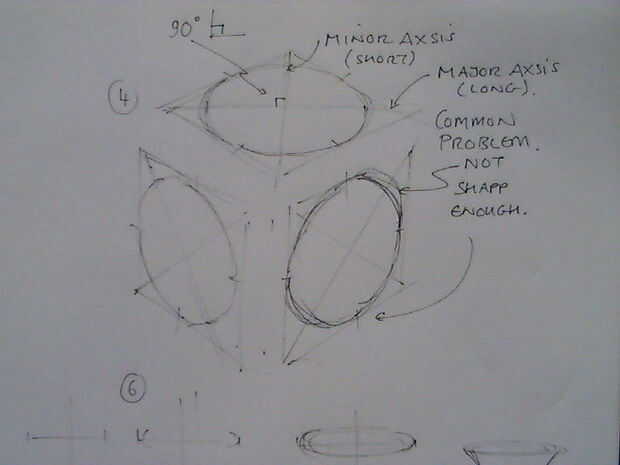 - Imagen 27 muestra una técnica donde por dibujamos una línea central que representa el eje menor y luego esbozar mano elipses a través de esta sobre el eje mayor de 90 grados.