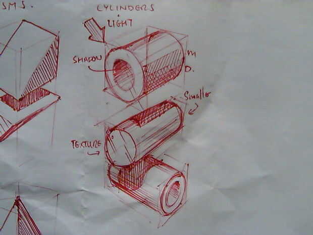 - y forma, sombra, brillo de imagen 31 - Anote el sombreado dentro del cilindro es opuesta al exterior sombreado.