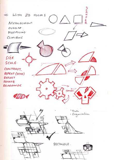 E - extender, extrusión, eliminar - elementos de estiramiento, hacer formas 3D aunque extrusión, eliminar elementos obvios.