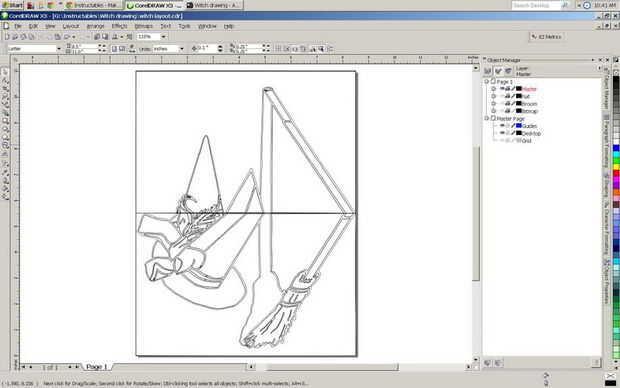 dibujo en Coreldraw X3 y traza un vector de la silueta de papel.