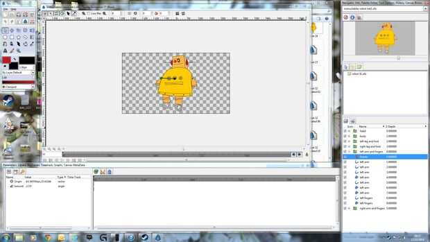 Vamos a hacer el Robot agitar su brazo izquierdo y producir un archivo gif animado para subir a sitios web etc. Haga clic en el ' brazo y los dedos ' verde caja a la derecha y seleccione la herramienta Rotar como en el pantallazo anterior.