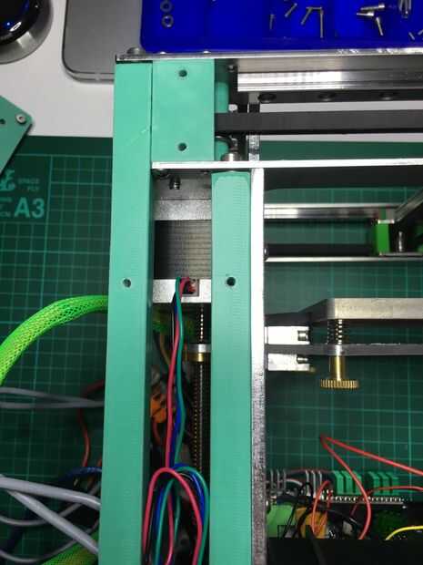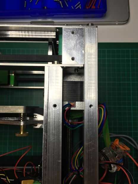 Este dos de 38 m m altos, llanos de horizontly dejan exatly 124mm espacio para el movimiento vertical del eje z. Deducción de una longitud de carro de 29mm de lineal-transporte (MGN09CZ0M, Hiwin), terminó con 95 mm posible tiempos de Z.