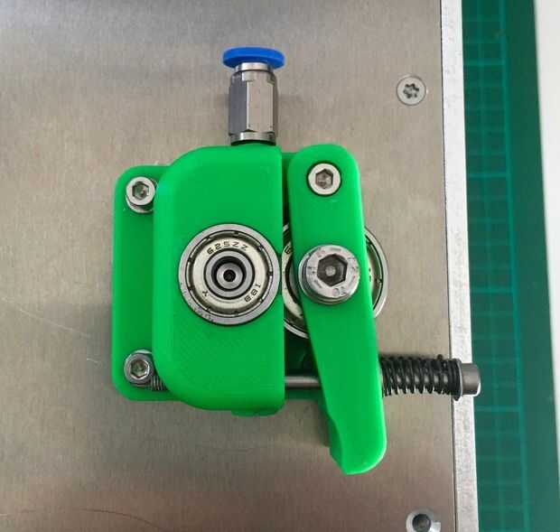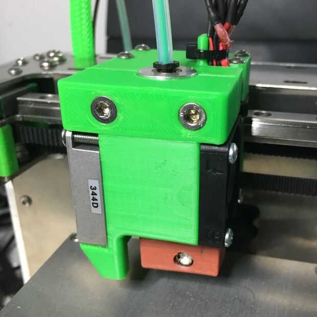 La extrusora es un impreso con un MK8 de engranes y para 1, filamento de 75mm. Este estirador se utiliza en todas mis impresoras 3D y estoy muy contento con él. Super sencillo y super barato para hacer super confiable.