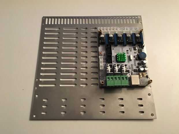Pongo todos stepperdrivers a la derecha de la hoja gruesa al lado de la tarjeta controladora. Debido a su tamaño, la hoja gruesa de 4 mm es un disipador de calor impresionante.