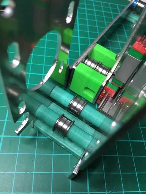 Por ejemplo, la altura del XY-plano es exactamente 38mm. Se trata de dos hechos: el motor del eje z es un más corto NEMA17 con 34mm de longitud, con la hoja de 2mm en cada lado. Sin un hueco para el motor del cuerpo, no hay distancia más pequeña es posible. La Asamblea más pequeña posible de un carro Y con cojinetes de pestaña es exactamente 33mm (intenté varias veces) y de 1mm de espacio para el movimiento con la hoja de 2mm a cada lado. Incluso utilizar los brida-rodamientos posible más pequeño. La parte limita con esto es el cinturón de GT2. La correa es de 6mm de ancho y dos MF104ZZ-brida-rodamientos tienen un runningsurface de sólo 6, 4mm. Asamblea de la XY-plano con cojinetes miniatura de la pestaña MF104ZZ