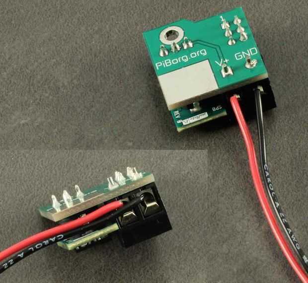 Tomar el BattBorg, tira de aproximadamente 8mm de los extremos de los cables rojo y negro, inserte en la BattBorg y apriete. Asegúrese de que los conectores están agarrando el conductor, no el aislador. Aquí es importante que el aislador no es demasiado largo, como potencialmente podría brevemente al motor, o uno al otro.