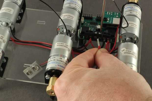 Conecte el cable negro de la BattBorg y del cable de cinta de la batería de 9V negro a la conexión de GND en el reverso de la PicoBorg. Apriete los tornillos y tire suavemente para asegurar que la abrazadera del conector ha mordido.