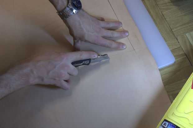 En el primer corte, se anota sólo ligeramente el cuero. Una vez que el cuero se anotó, puede utilizar un poco más presión y no tienes que ser tan cuidadosos, porque la hoja tiende a seguir la partitura.