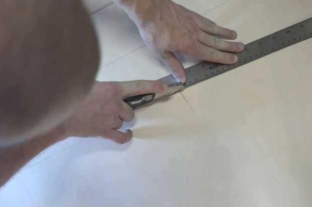 Tenga cuidado al llegar a una de las secciones, donde el contorno cambia de dirección. Usted no quiere cortar más allá del final de la línea y en la pieza de cuero que están cortando. Parar el corte donde el contorno cambia de dirección y luego vuelva a colocar la regla y comience el corte siguiente en la línea siguiente.