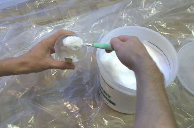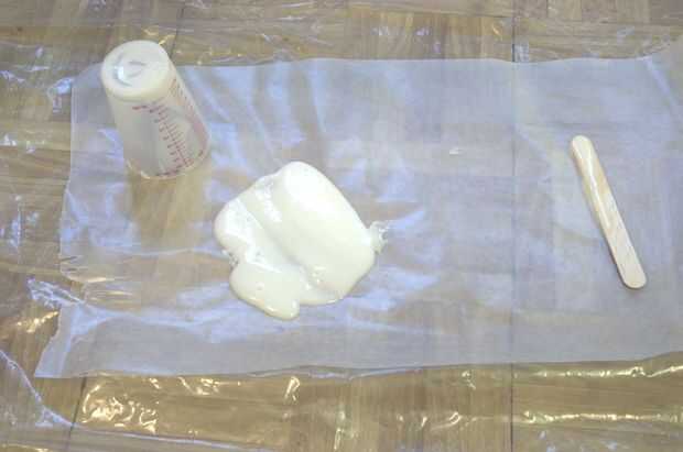 Debe mezclar bien el epoxi primero y luego añadir algunos Sílice ahumado al mezclando epoxi. Añadir pequeñas cantidades a la vez, para hacer la mezcla más fácil. Mantenga la adición de sílice ahumado hasta llegar a algo así como una consistencia de "mocos". Tenga en cuenta que la sílice pirogenada hará el epoxi un color blanco translúcido. No te preocupes, cuando difundes delgada bastante seguirá siendo evidente.