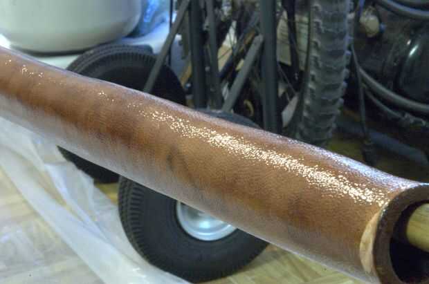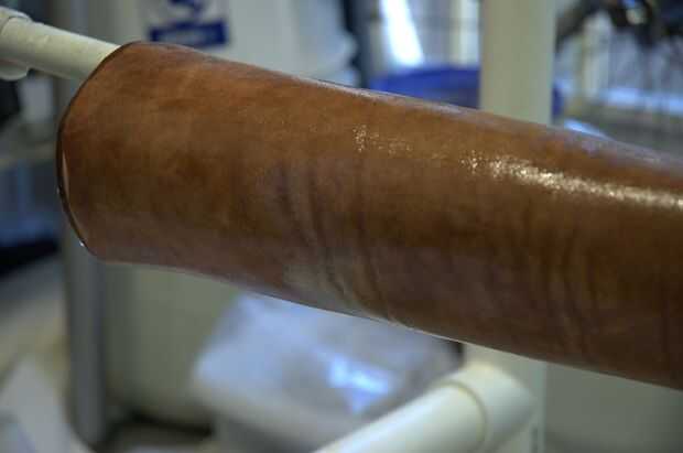 Utilice el mismo procedimiento para aplicar la 2ª capa como la primera capa. Asegúrese de extender el epoxi agradable y fino, para que el epoxi no funciona. Puesto que la primera capa de epoxy impregnado en la piel y selló, el cuero no absorbe la capa 2, por lo que no necesitará regresar y seguir aplicando epoxy como empapa para arriba, como hizo con la primera capa. No necesita usar mucho epoxy, solo mezclar aproximadamente 1 onza (.5 onza de cada componente). Probablemente no utilizarás todo.