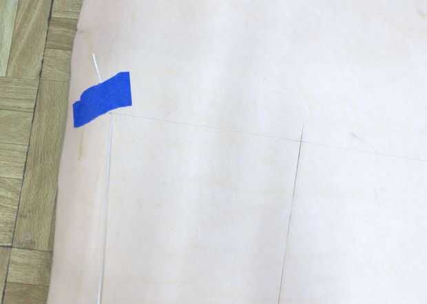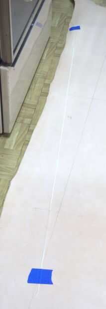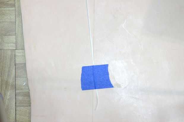 Tensar la cadena y acercarles hasta la otra marca en la cadena se alinea con la línea central y luego cinta ese extremo de la cuerda hacia abajo para que la marca es directamente sobre la línea central. Es el centro del círculo que forma la curva que vas a dibujar.