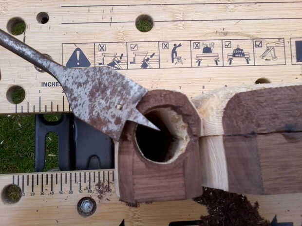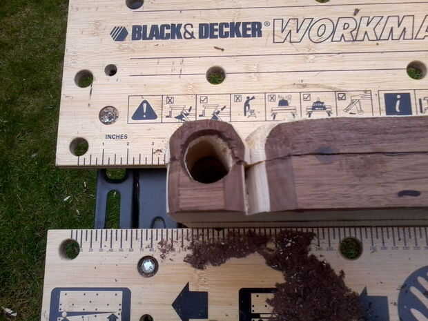 Bastante simple etapa. Hazte con una broca de taladro y taladro hacia fuera de la boquilla. Usé una broca de 35mm.