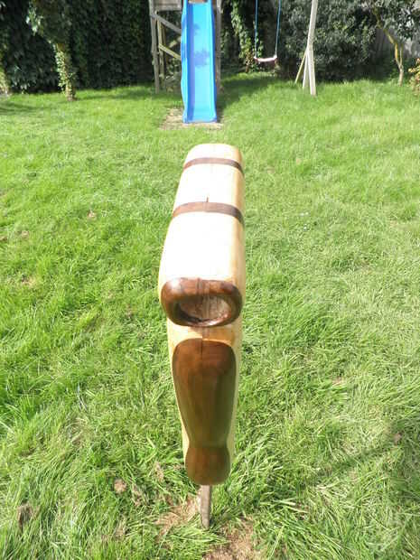 Es cómo el didge parecía que cuando la compré. Lo compré de una persona en privado, ella lo había traído algunos 20 años de un viaje a Australia, jugó un poco y que lo olvidó. Es un didgeridoo, sencillo y bueno, probablemente de madera de Eukalyptus.