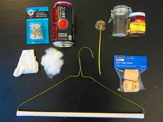 Los alfileres, corchos y jar se encontraron todos a Michaels por un precio bastante barato, aunque la mayoría de los lugares debe tener elementos similares.