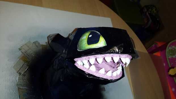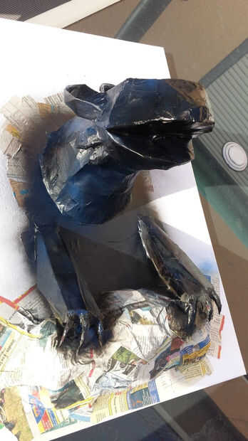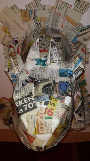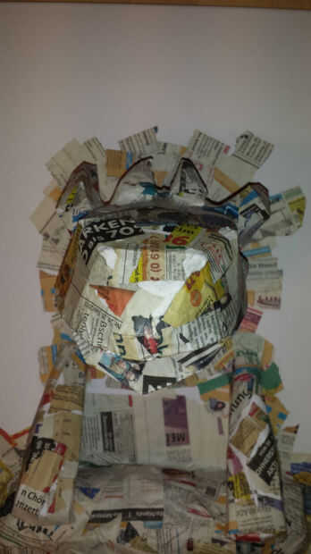 El siguiente paso fue una capa de papel maché para hacerse más fuerte y algunos spraypaint negro como el color de base.
