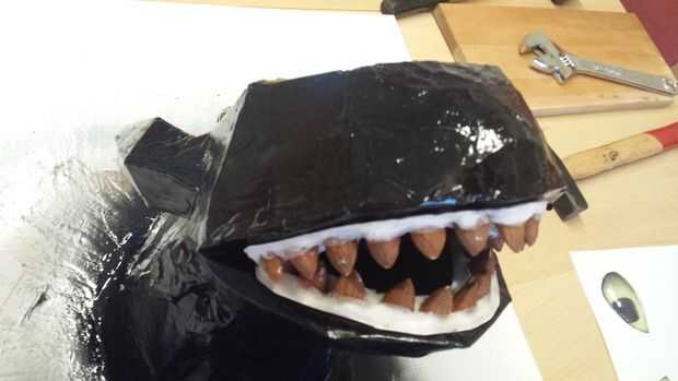 Entonces utilicé algunas semillas de almendra y papel maché para hacer los dientes.