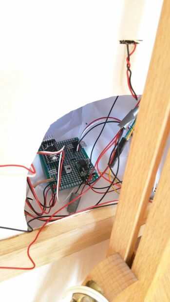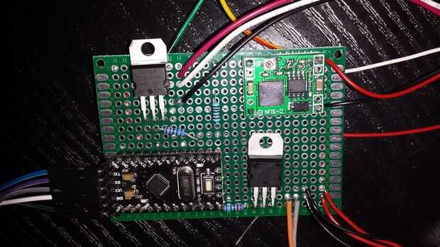 Ahora para la parte electrónica, comencé a poner todo junto en un tablero. Principalmente un Arduino Mini Pro va a hacer todos los trucos descritos al principio. Es fácil de usar y puede ser fácilmente reprogramado si son necesarios cambios. Realmente necesito trabajar en mis habilidades de diseño y soldadura electrónica.