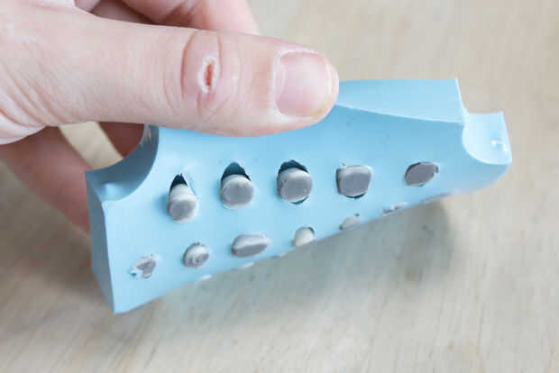 Cuando ya no esté pegajoso al tacto, quitar el caucho del molde.