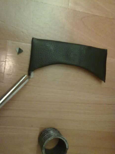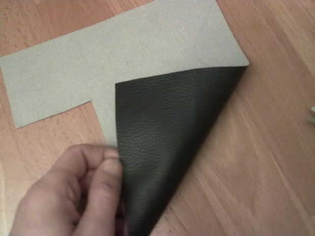 Así que corte un pedazo de cuero con la misma forma que el papel, sólo un poco más grande (utilicé cuero eco negro, simplemente porque tengo un montón de él:)