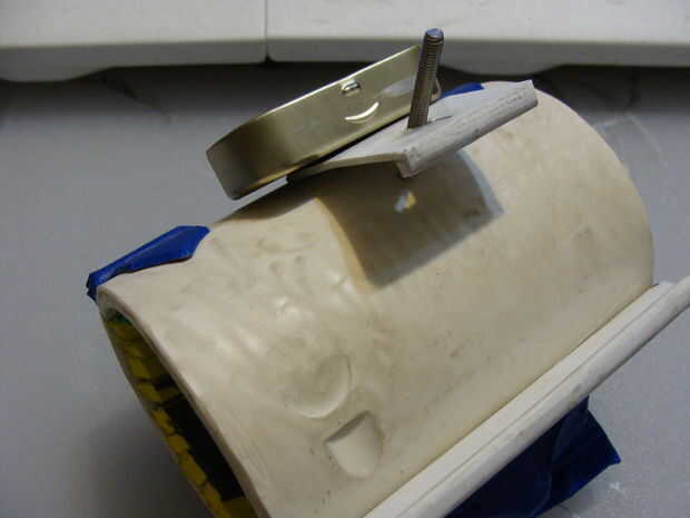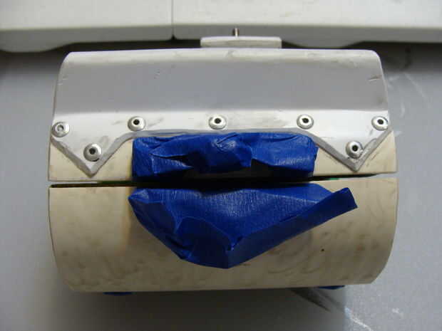 Podría perforar todos los remaches en las piezas de metal y reemplazar em más tarde, pero la espuma es tipo de la cobertura de la parte posterior de los remaches yo dije enroscarlo y enmascarados todo apagado. Tomé la tapa de la lata y enmascarados los otros pedacitos de metal.
