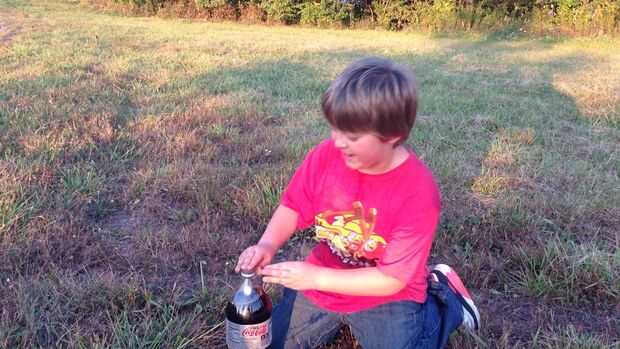 Mentos y cohete de coca cola de dieta