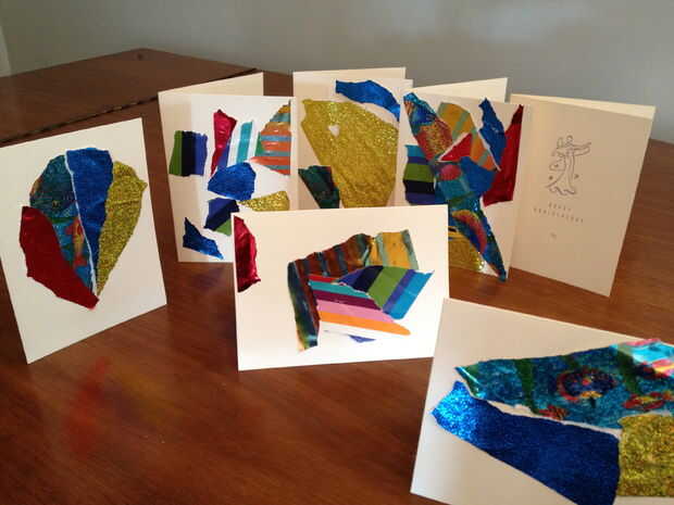 La imagen principal es una tarjeta pop-up puede hacer siguiendo estas instrucciones. Las otras tres cartas son auto explicativas: puede utilizar la gráfica de la envoltura de papel de un simple cortar y pegar, o puede utilizar un papel relativamente normal para cortar (o desgarro) su propia imagen.