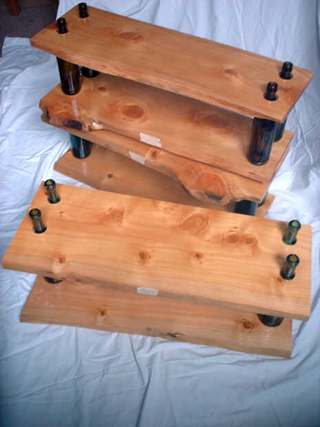 estantería construida de encontrar madera y utiliza botellas de cerveza. Esta estantería es diseñado para sentarse en un mostrador de la cocina o escritorio, o construido a partir de la planta. Es un sistema compacto que es fácilmente montado, adapta
