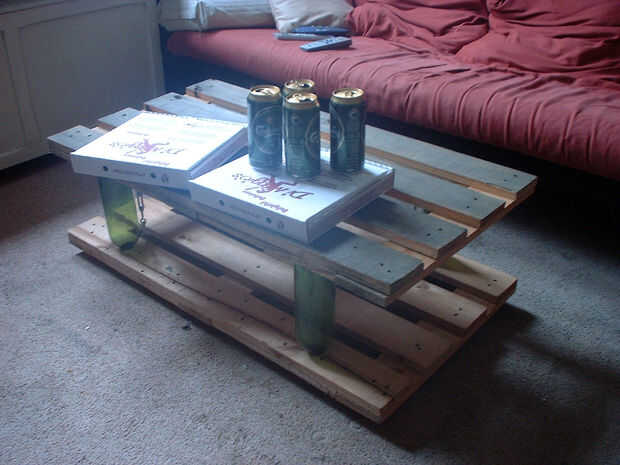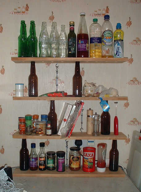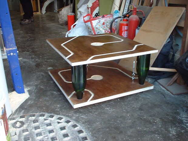 Las tablas son al igual que los módulos de estantería pero volteado boca abajo y sin agujeros en la plataforma en la base de las botellas (la mesa).