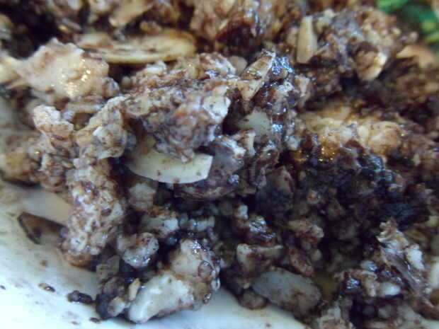 -Almendras y cacao en polvo (o chispas de chocolate. Funcionó hacia fuera.)