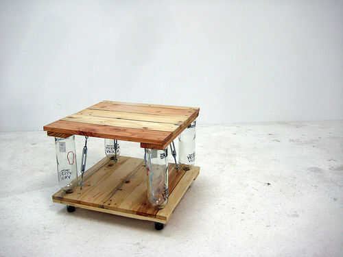 Este documento le dirá cómo construir una mesa de café verde de diez. Puede utilizar cualquier cuatro botellas de altura similar y cualquier madera encontrada, adaptando las dimensiones para adaptarse a la madera con que se trabaja.