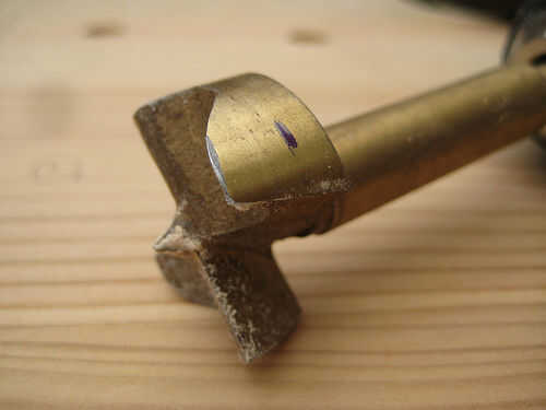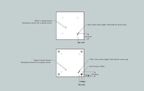 Taladre cuatro agujeros y fije el hardware como se describe en la imagen de diseño (también en formato .pdf y sketchup). No puedo enfatizar suficiente cuán grandes pedacitos de Forstner están para este trabajo! (en la foto).